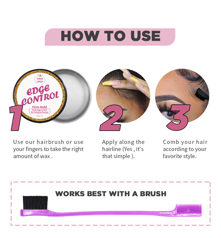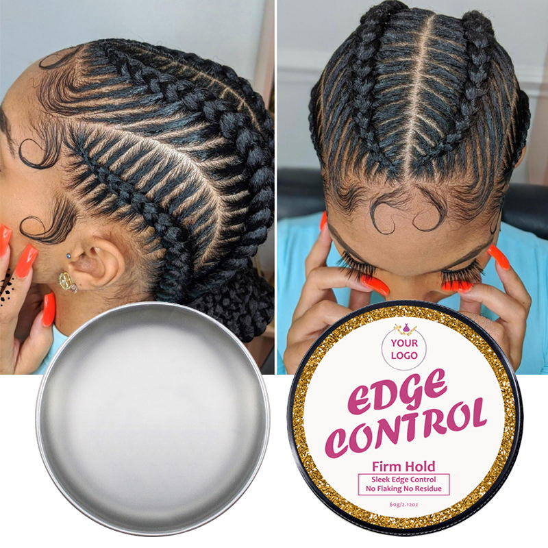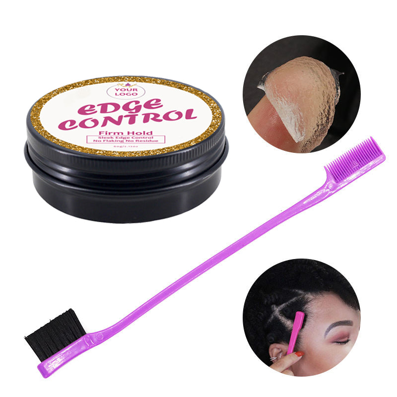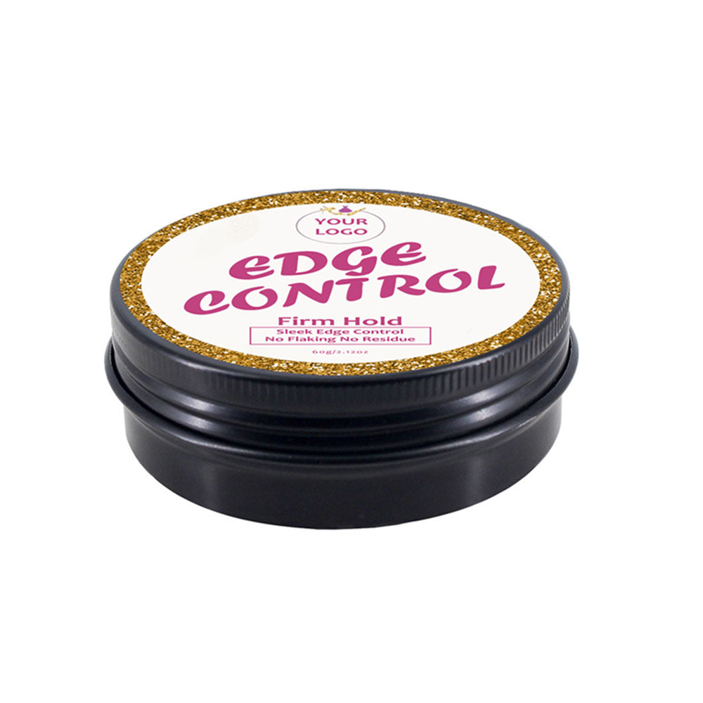 # This is a 60g edge control hair wax in matte black premium jar packaging, perfect for online sales, and supports custom kits with three different kinds of brushes.