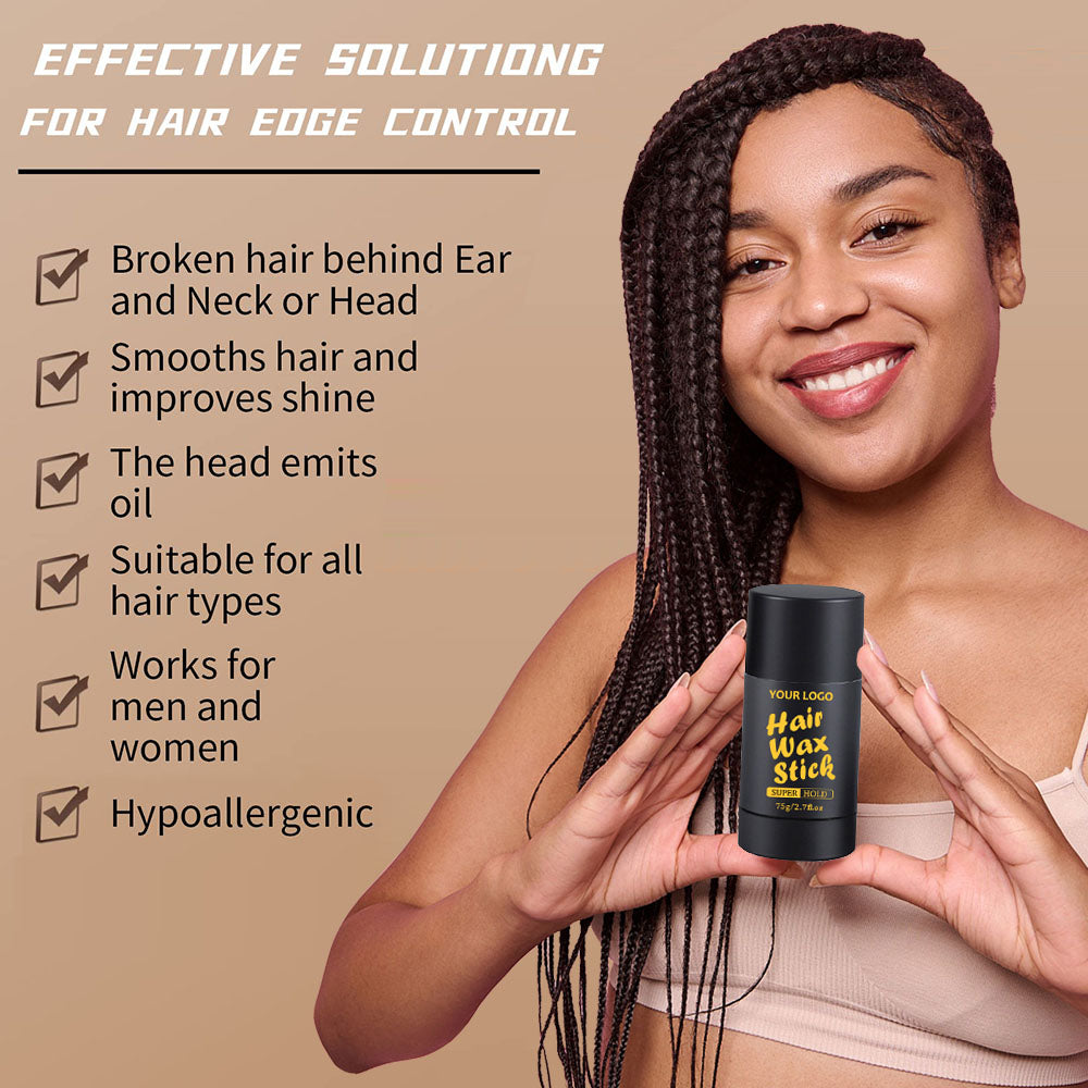# Our hair wax stick with strong hold, non whitening, non scales. Provides amazing hold and a silky shine to hair, it's not greasy or oily at all, can be used on wigs and natural hair of all types. This product contains beeswax which is good for an itchy scalp and moisturises hair and scalp.