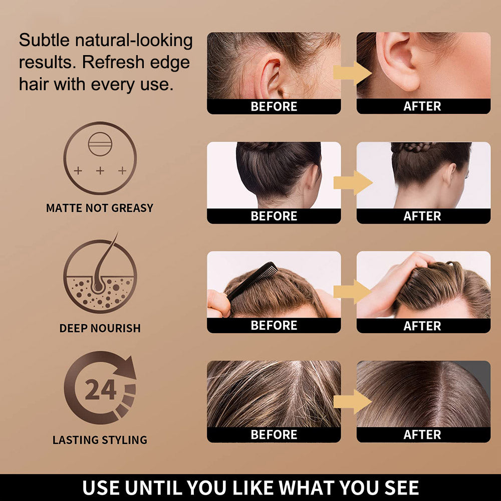 # Our hair wax stick with strong hold, non whitening, non scales. Provides amazing hold and a silky shine to hair, it's not greasy or oily at all, can be used on wigs and natural hair of all types. This product contains beeswax which is good for an itchy scalp and moisturises hair and scalp.