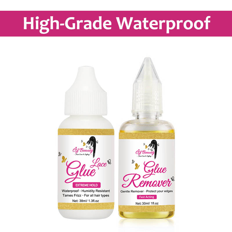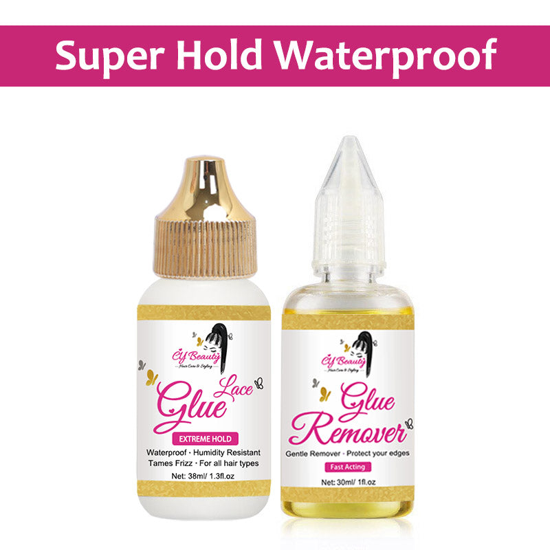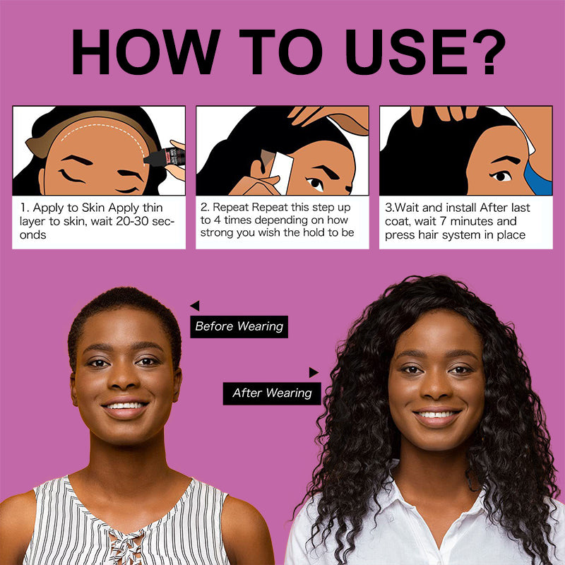 #The lace glue is super long lasting, instant drying, layers will take 2 seconds or less to fully dry. Super strong that will not cause lifting between wear and holds through sweat, water, and an oily scalp. The remover is excellent for taking off tape gently without pain and removing the glue easily from the skin and wig.