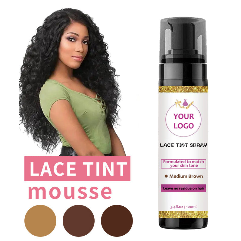 #This is a lace tint mousse with 3 colors available, 100ml packaging, support custom kit with matched accessories such and lace melting band, lace glue, comb and brush…