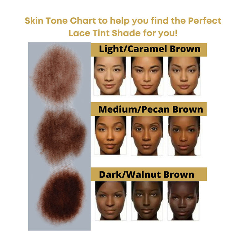 #This lace tint mousse perfectly lightweight and gentle on sensitive skin with shades that blend seamlessly in one process. Perfect match your skin tone, quick-drying, easy tinting process, no residue, alcohol-free, no ammonia.